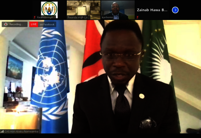 The event was held virtually and attended by members of the diplomatic corps, Government of Kenya, friends of Rwanda and Rwandans living and working in Kenya including the University students.